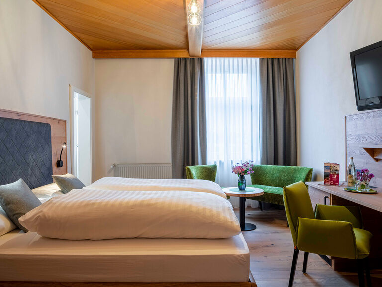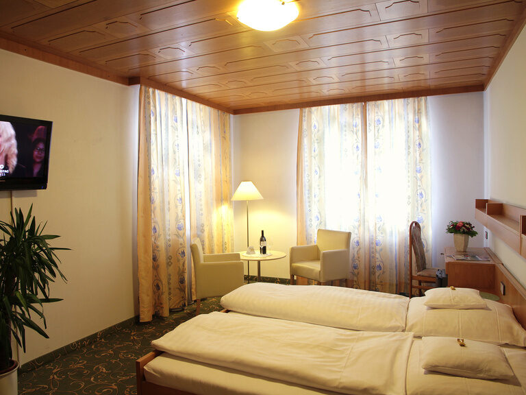 Unsere hellen und freundlichen Hotelzimmer, teilweise mit Balkon und Osserblick, sind komfortabel ausgestattet und verfügen über Dusche/WC, Telefon, Haarfön, Safe, W-LAN (kostenlos) und SAT-TV.