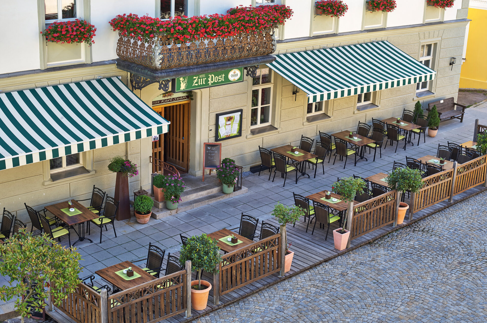 Lassen Sie einen schönen Urlaubstag im Lamer Winkel entspannt ausklingen - in den Sommermonaten ist unsere gemütliche Sonnenterrasse am Marktplatz bestens dafür geeignet.
